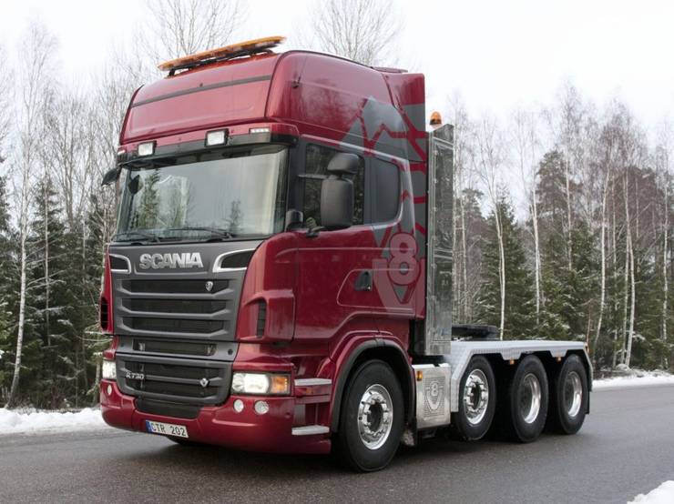 Scania has been producing heavy vehicles for over a century. It's not a surprise that it has built one of the most powerful big rigs on the road. The Swedish manufacturer has offered the 2010 V8 engine in four versions: 500, 560, 620 and 730 horsepower. The V8 engine is offered in combination with Scania Opticruise.